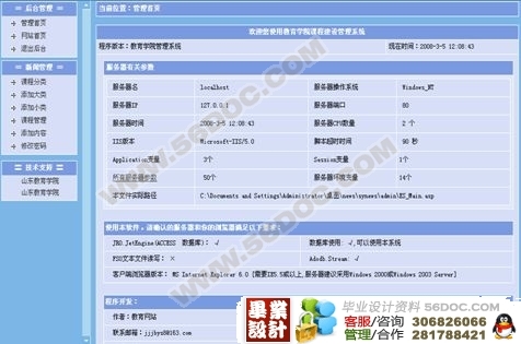 本程序前台采用ASP(Active Server Pages)进行页面制作和程序的编写,后台由Access数据库支持,通过使用asp(Active Server Pages)语言实现动态网页的效果,达到对数据库的调用操作以完成使用者的要求。本文中除了有对程序的总体设计、详细设计、功能实现等主体部分外,在这之前还介绍了与网上教学系统相关的信息管理系统、网络编程技术、Access数据库服务器等的基本内容及发展情况。
