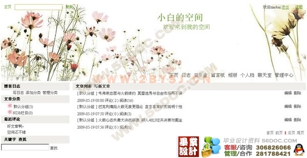 关键词: 博客;asp.NET;SQL Server 2000;Visual Studio 2005
