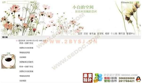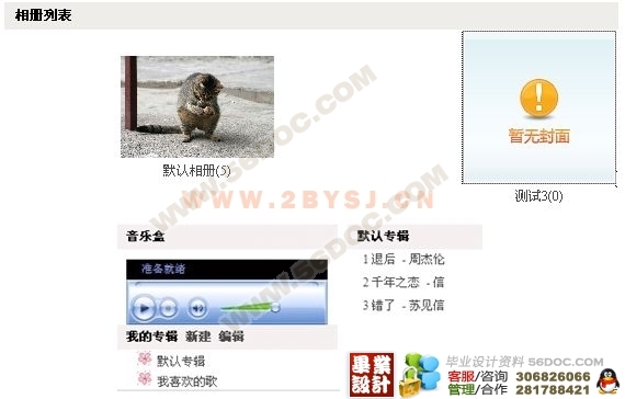 系统功能模块主要划分为:日志、相册、音乐盒、留言板、聊天室。