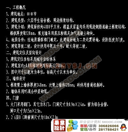 建筑类型:六层某中学学生公寓楼,现浇框架填充墙结构。 [资料来源:http://Doc163.com]