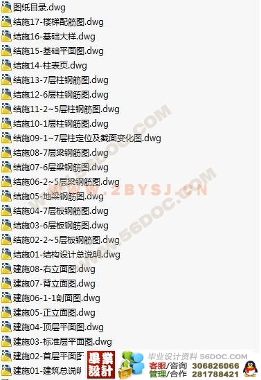 结构施工图设计亦是本设计的一个重要组成部分,①、多层房屋结构布置施工图,结构布置施工图包括基础、各楼面及屋面结构平面布置图,对于某些标高复杂的结构,还应该出结构剖面布置图;②、现浇柱下基础施工图;应包括模板图和配筋图;③、框架施工图,应包括模板图和配筋图。